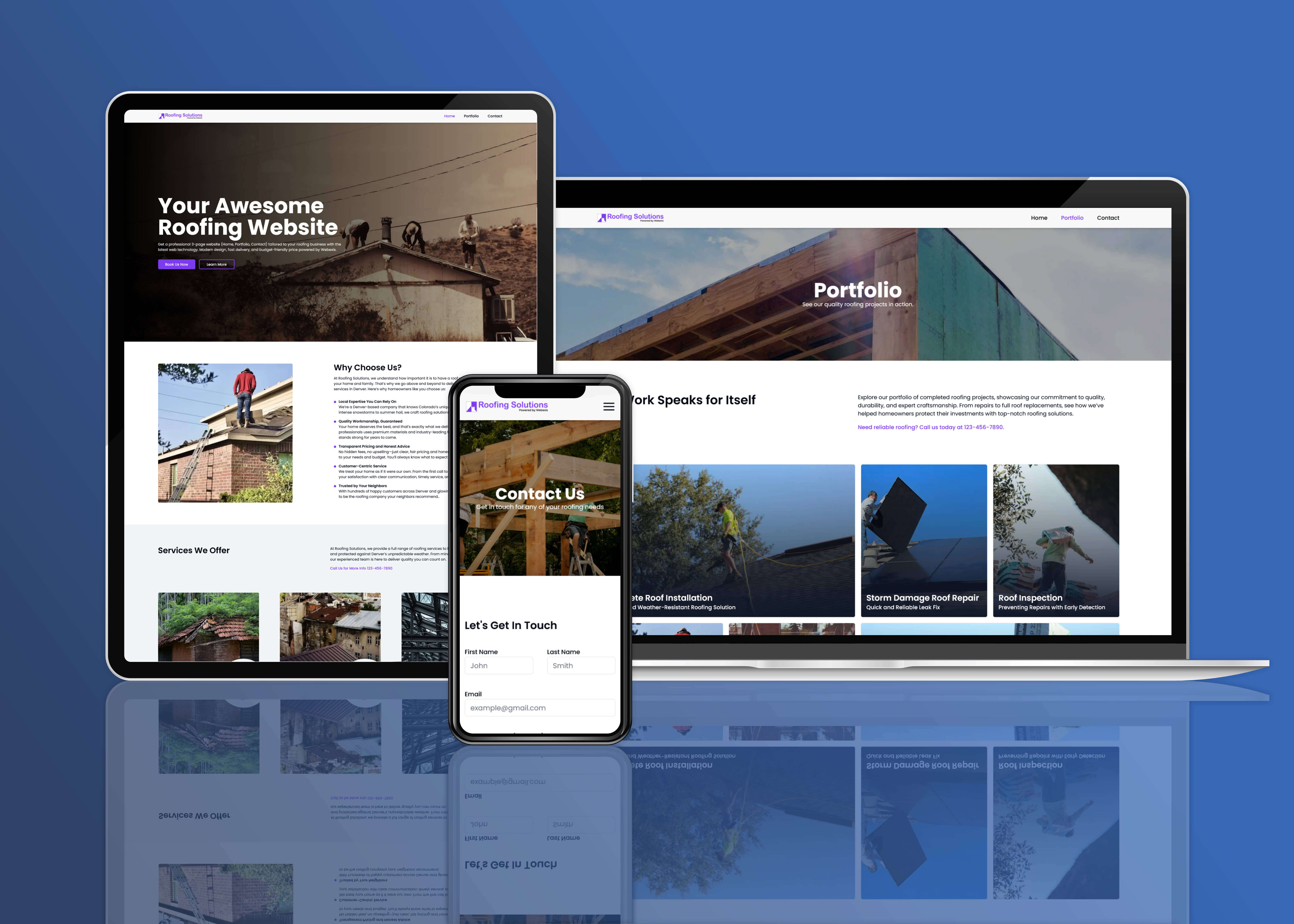 This modern three-page roofing website, built with Next.js and Tailwind CSS, offers a sleek design with a Home, Portfolio, and Contact page. It’s fully responsive and optimized to provide a seamless user experience on all devices.